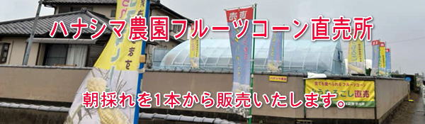 | ハナシマ農園は、フルーツとうもろこし産直販売・直売農家です。 栽培から収穫発送まで、すべてをハナシマ農園で執り行っておりますので 安心で安全、低価格、新鮮で美味しいトウモロコシを産地直送いたます。 |