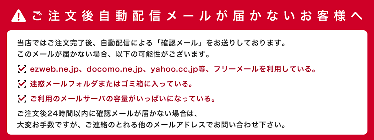 以上をご理解のうえ、ご注文くださいますようお願いいたします。