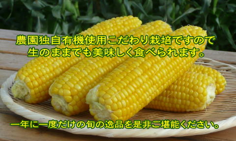 | 園主から一言! とうもろこしが届いたら、なるべく早めに調理してください。少しでも美味しいとうもろこしをご賞味いただければと思います。 |