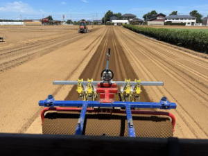 人参の播種作業はマーカー無しで設定の幅で真直ぐに播けます。暑い中、ストレス無しです。